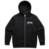 Embroidered front logo, screen printed back.