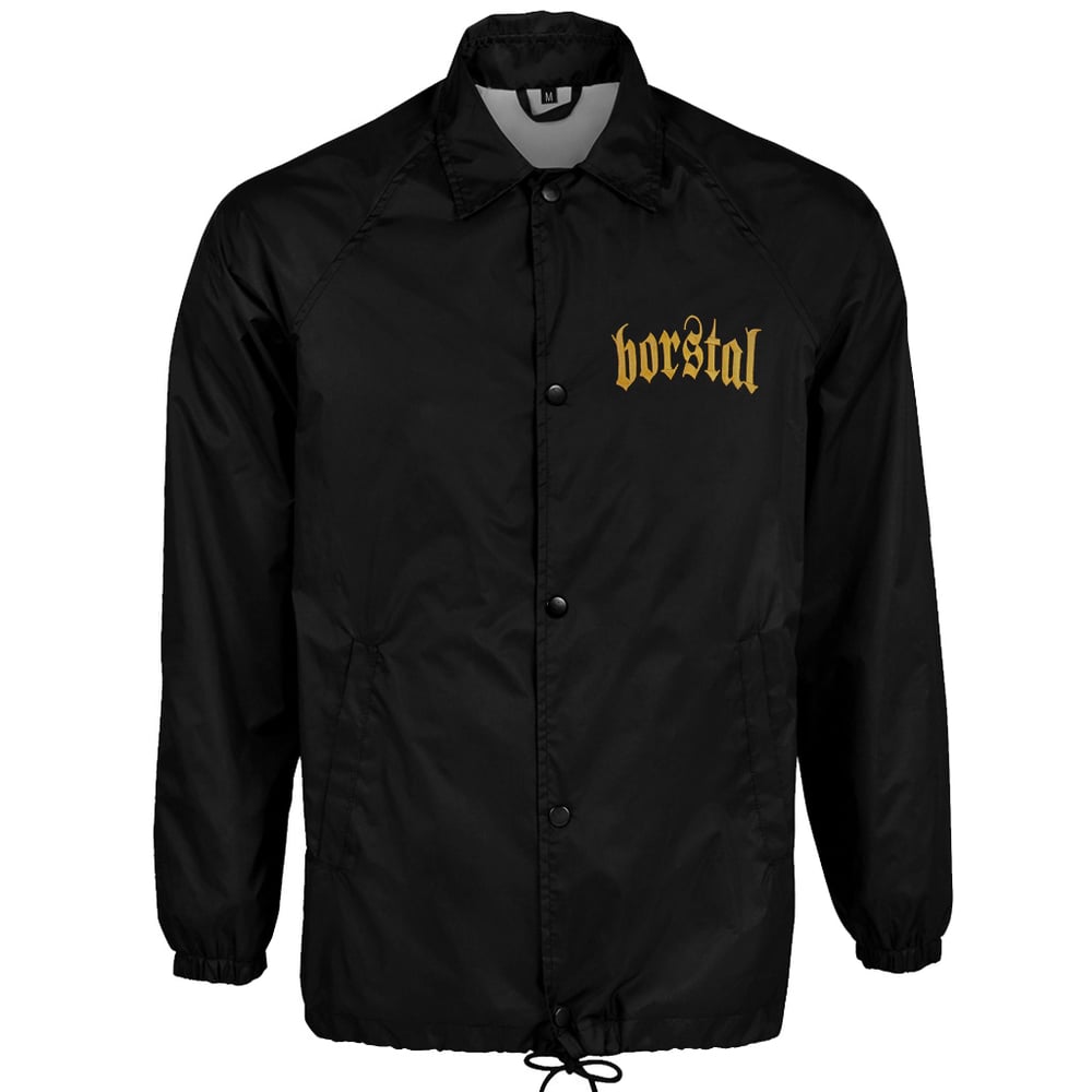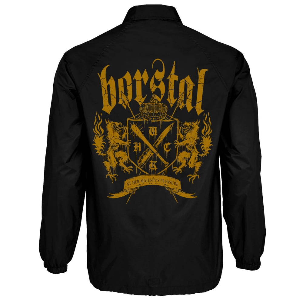 Quality coach jacket with embroidered logo on the front, and 'At Her Majesty's Pleasure' back print.